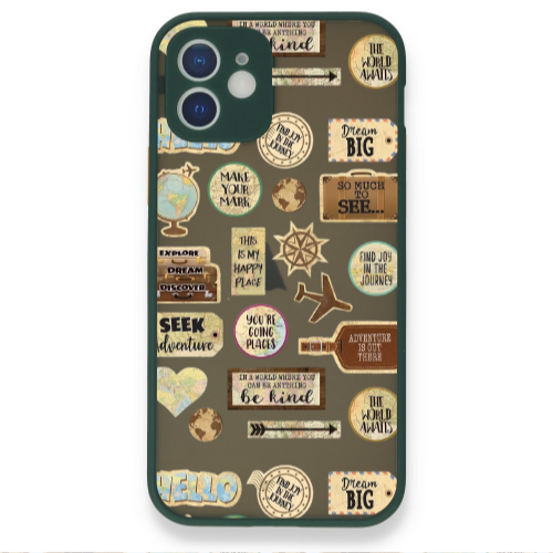 Apple iPhone 12 Mini Place Koyu Yeşil Hux Telefon Kılıfı