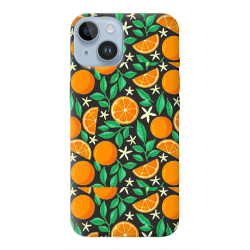 Apple iPhone 14 Portakal2 Siyah Renkli Silikon Telefon Kılıfı