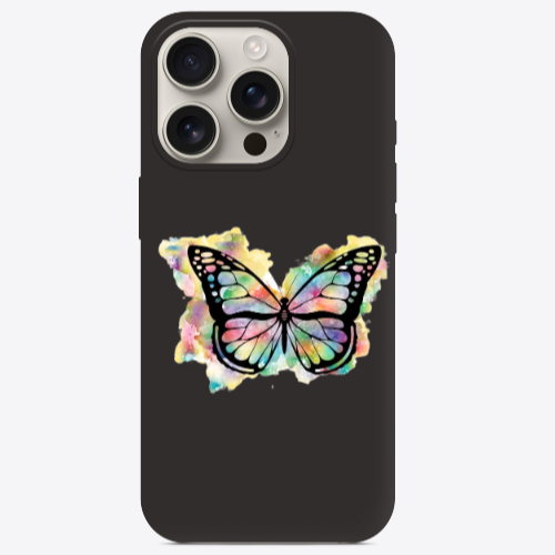 Apple iPhone 16 Pro Max Rengarenk Kelebek Siyah Renkli Silikon Telefon Kılıfı