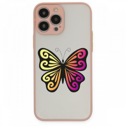 Apple iPhone 14 Pro Max Rengarenk Kelebek2 Pembe Hux Telefon Kılıfı