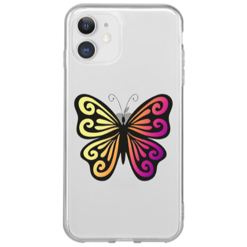 Apple iPhone 12 Mini Rengarenk Kelebek2 Transparent Şeffaf Telefon Kılıfı