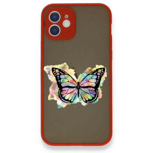 Apple iPhone 12 Rengarenk Kelebek Kırmızı Hux Telefon Kılıfı