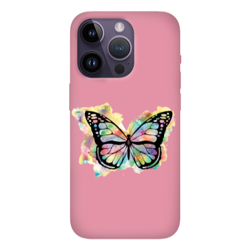 Apple iPhone 14 Pro Max Rengarenk Kelebek Pembe Renkli Silikon Telefon Kılıfı