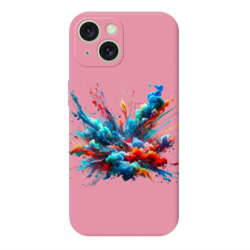 Apple iPhone 15 Plus Renk Patlaması3 Pembe Renkli Silikon Telefon Kılıfı