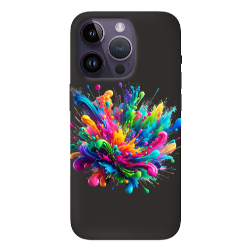 Apple iPhone 14 Pro Max Renk Patlaması Siyah Renkli Silikon Telefon Kılıfı