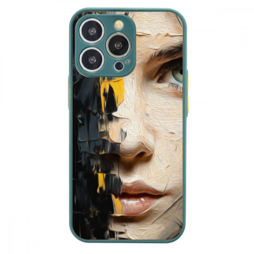 Apple iPhone 14 Pro Renkli Göz Koyu Yeşil Hux Telefon Kılıfı