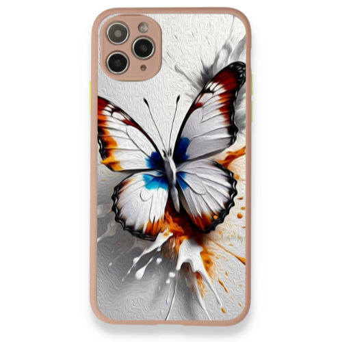 Apple iPhone 12 Pro Max Renkli Kelebek Pembe Hux Telefon Kılıfı