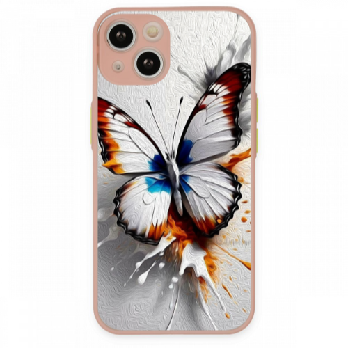 Apple iPhone 13 Mini Renkli Kelebek Pembe Hux Telefon Kılıfı