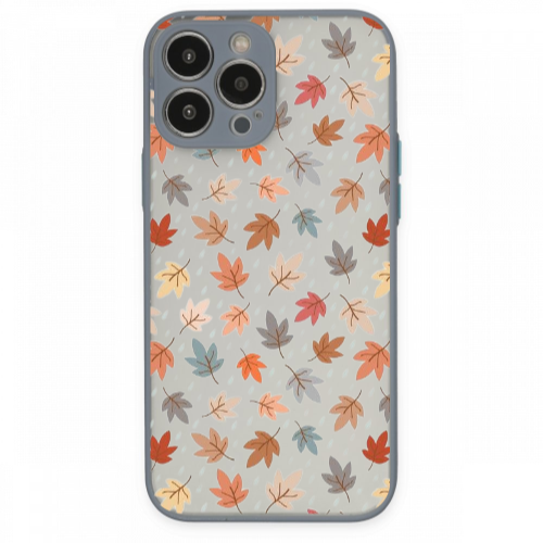 Apple iPhone 13 Pro Max Renkli Yapraklar Gri Hux Telefon Kılıfı