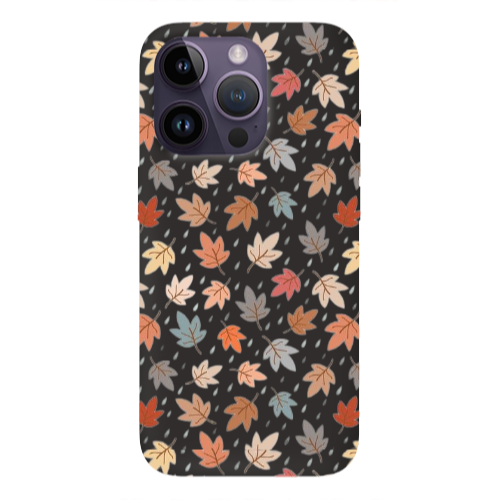 Apple iPhone 14 Pro Max Renkli Yapraklar Siyah Renkli Silikon Telefon Kılıfı