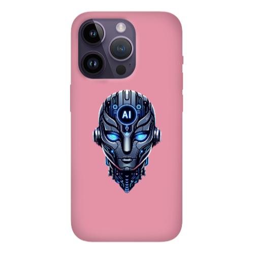 Apple iPhone 14 Pro Max Robot Pembe Renkli Silikon Telefon Kılıfı