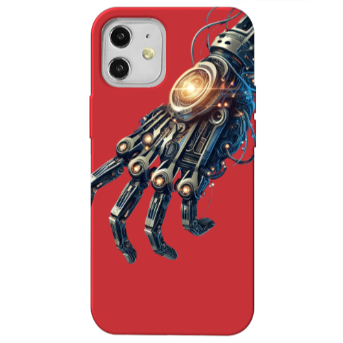 Apple iPhone 12 Mini Robotik El Kırmızı Renkli Silikon Telefon Kılıfı