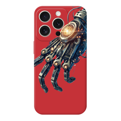 Apple iPhone 15 Pro Max Robotik El Kırmızı Renkli Silikon Telefon Kılıfı