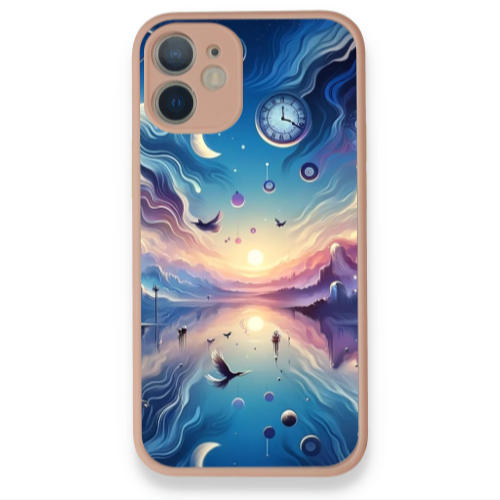 Apple iPhone 12 Mini Saat Kuş Pembe Hux Telefon Kılıfı