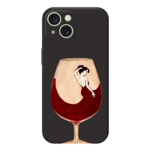 Apple iPhone 15 Şarap Kadın Siyah Renkli Silikon Telefon Kılıfı
