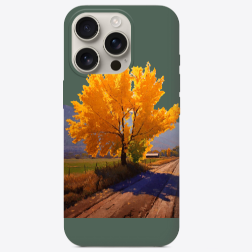 Apple iPhone 16 Pro Sarı Ağaç Koyu Yeşil Renkli Silikon Telefon Kılıfı