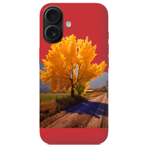 Apple iPhone 16 Sarı Ağaç Kırmızı Renkli Silikon Telefon Kılıfı