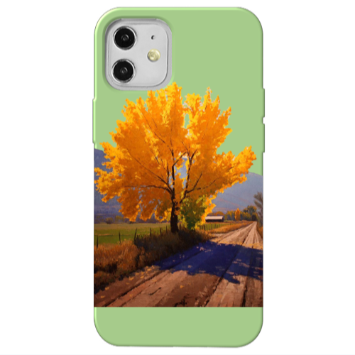 Apple iPhone 12 Sarı Ağaç Açık Yeşil Renkli Silikon Telefon Kılıfı