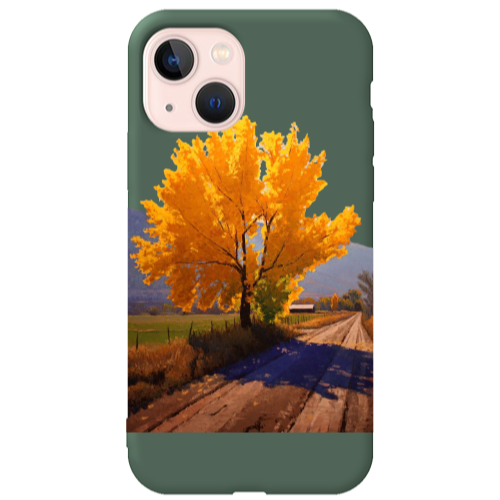 Apple iPhone 13 Sarı Ağaç Koyu Yeşil Renkli Silikon Telefon Kılıfı