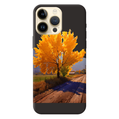 Apple iPhone 13 Pro Max Sarı Ağaç Siyah Renkli Silikon Telefon Kılıfı