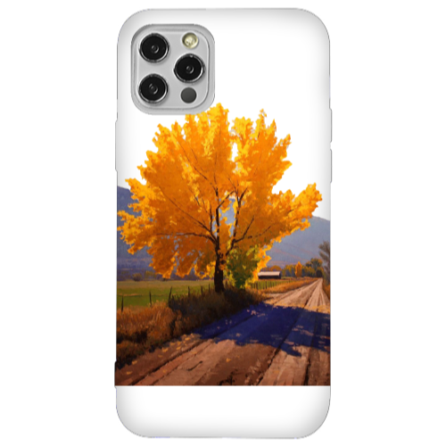 Apple iPhone 12 Pro Max Sarı Ağaç Beyaz Renkli Silikon Telefon Kılıfı