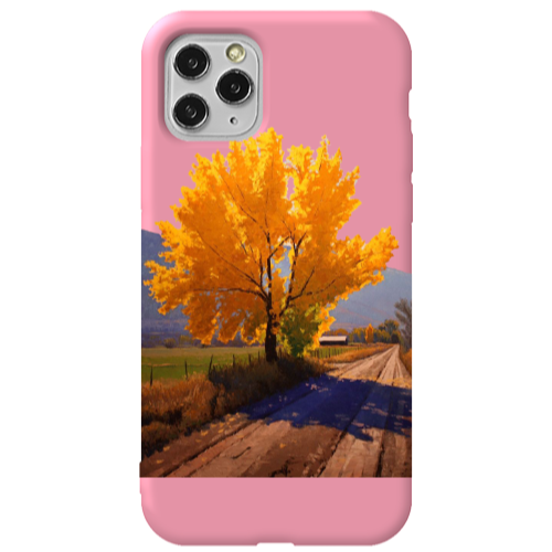 Apple iPhone 11 Pro Max Sarı Ağaç Pembe Renkli Silikon Telefon Kılıfı