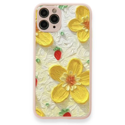 Apple iPhone 11 Pro Sarı Çiçek Pembe Hux Telefon Kılıfı