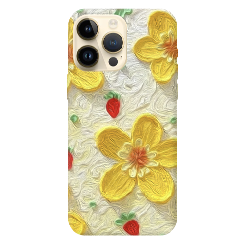 Apple iPhone 13 Pro Max Sarı Çiçek Sarı Renkli Silikon Telefon Kılıfı
