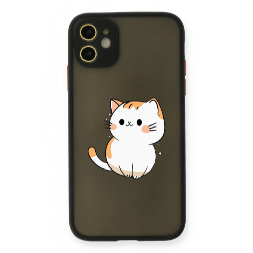 Apple iPhone 11 Sarı Kedi Siyah Hux Telefon Kılıfı