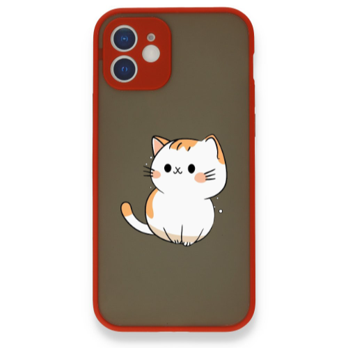 Apple iPhone 12 Sarı Kedi Kırmızı Hux Telefon Kılıfı