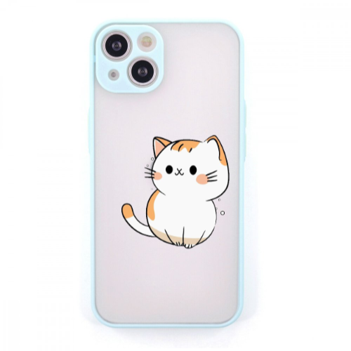 Apple iPhone 13 Mini Sarı Kedi Turkuaz Hux Telefon Kılıfı