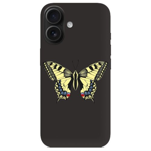 Apple iPhone 16 Sarı Kelebek Siyah Renkli Silikon Telefon Kılıfı