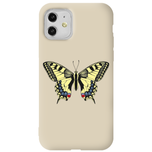 Apple iPhone 11 Sarı Kelebek Krem Renkli Silikon Telefon Kılıfı
