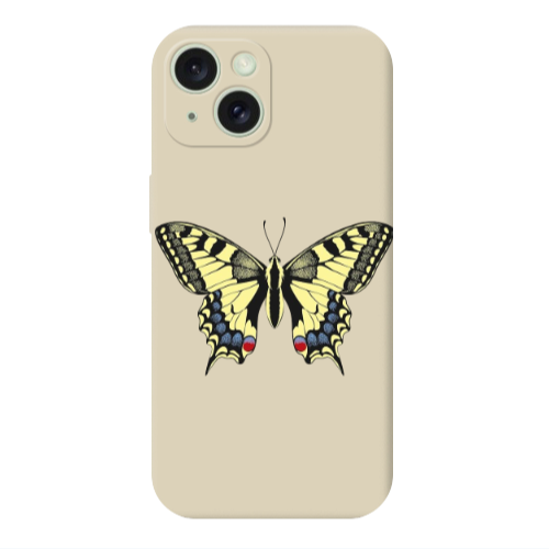 Apple iPhone 15 Plus Sarı Kelebek Krem Renkli Silikon Telefon Kılıfı