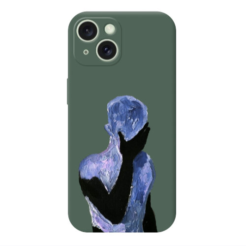 Apple iPhone 15 Şaşırmış2 Koyu Yeşil Renkli Silikon Telefon Kılıfı