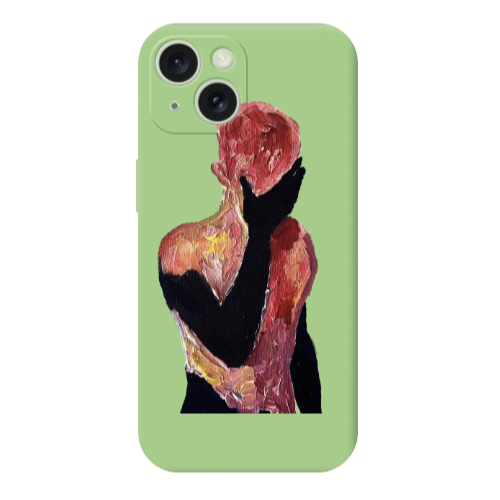 Apple iPhone 15 Şaşırmış Açık Yeşil Renkli Silikon Telefon Kılıfı