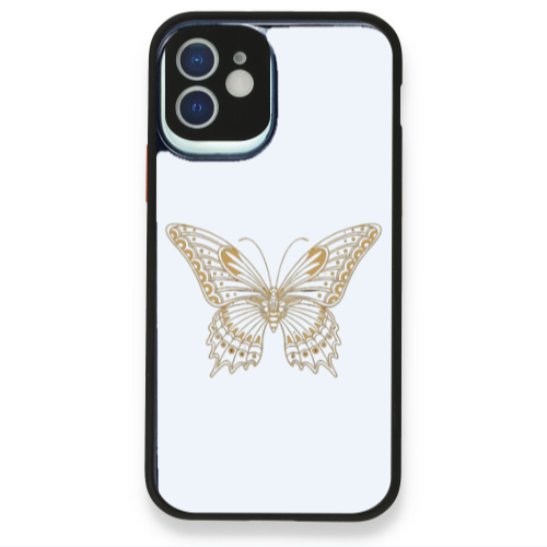 Apple iPhone 12 Şeffaf Kelebek Black Glossy Telefon Kılıfı