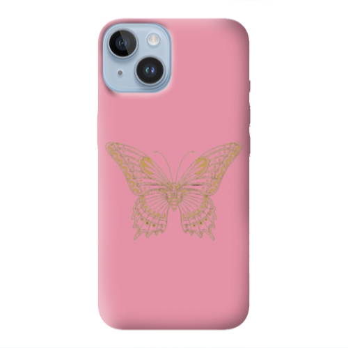 Apple iPhone 14 Plus Şeffaf Kelebek Pembe Renkli Silikon Telefon Kılıfı