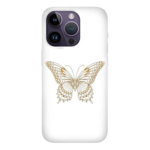 Apple iPhone 14 Pro Max Şeffaf Kelebek Beyaz Renkli Silikon Telefon Kılıfı
