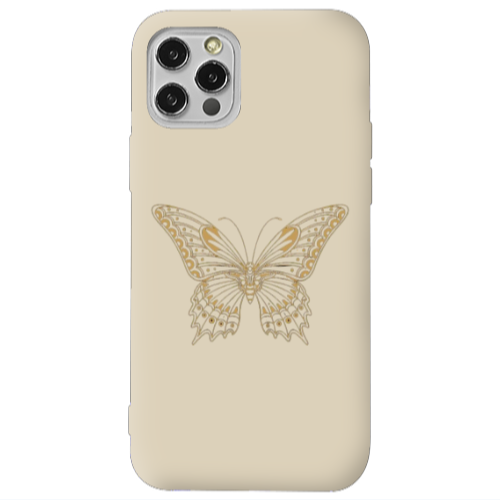 Apple iPhone 13 Pro Şeffaf Kelebek Krem Renkli Silikon Telefon Kılıfı