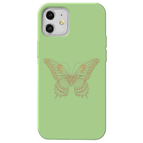 Apple iPhone 12 Mini Şeffaf Kelebek Açık Yeşil Renkli Silikon Telefon Kılıfı