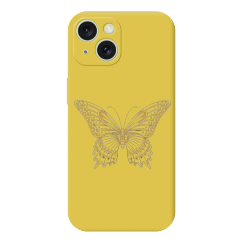 Apple iPhone 15 Plus Şeffaf Kelebek Sarı Renkli Silikon Telefon Kılıfı