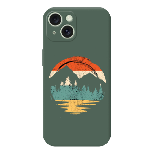 Apple iPhone 15 Plus Şeffaf Manzara Koyu Yeşil Renkli Silikon Telefon Kılıfı