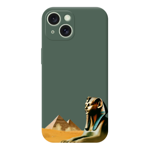 Apple iPhone 15 Sfenks Koyu Yeşil Renkli Silikon Telefon Kılıfı