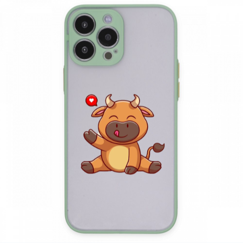 Apple iPhone 13 Pro Max Şımarık İnek Turkuaz Hux Telefon Kılıfı