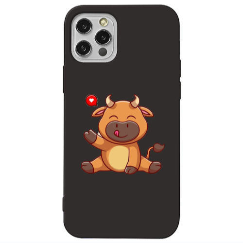 Apple iPhone 13 Pro Şımarık İnek Siyah Renkli Silikon Telefon Kılıfı