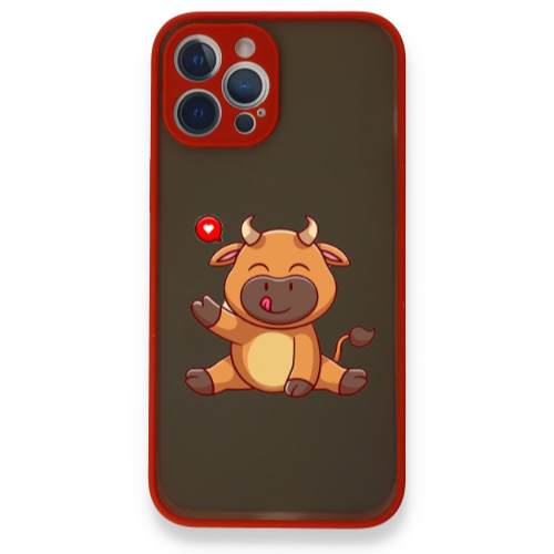 Apple iPhone 12 Pro Şımarık İnek Kırmızı Hux Telefon Kılıfı