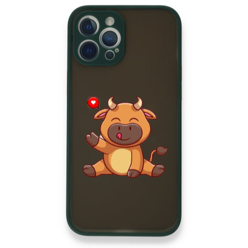 Apple iPhone 12 Pro Max Şımarık İnek Koyu Yeşil Hux Telefon Kılıfı
