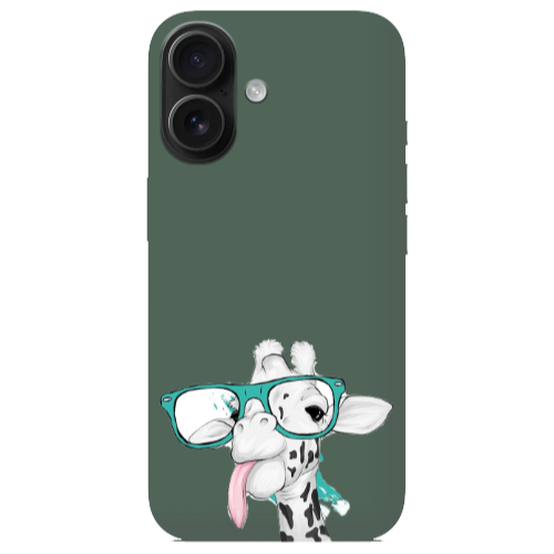 Apple iPhone 16 Şımarık Zürafa Koyu Yeşil Renkli Silikon Telefon Kılıfı