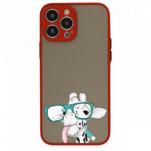 Apple iPhone 13 Pro Max Şımarık Zürafa Kırmızı Hux Telefon Kılıfı
